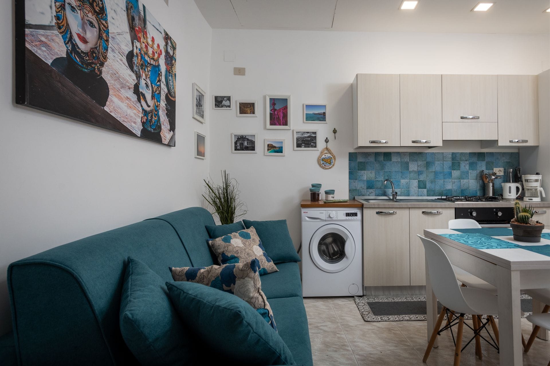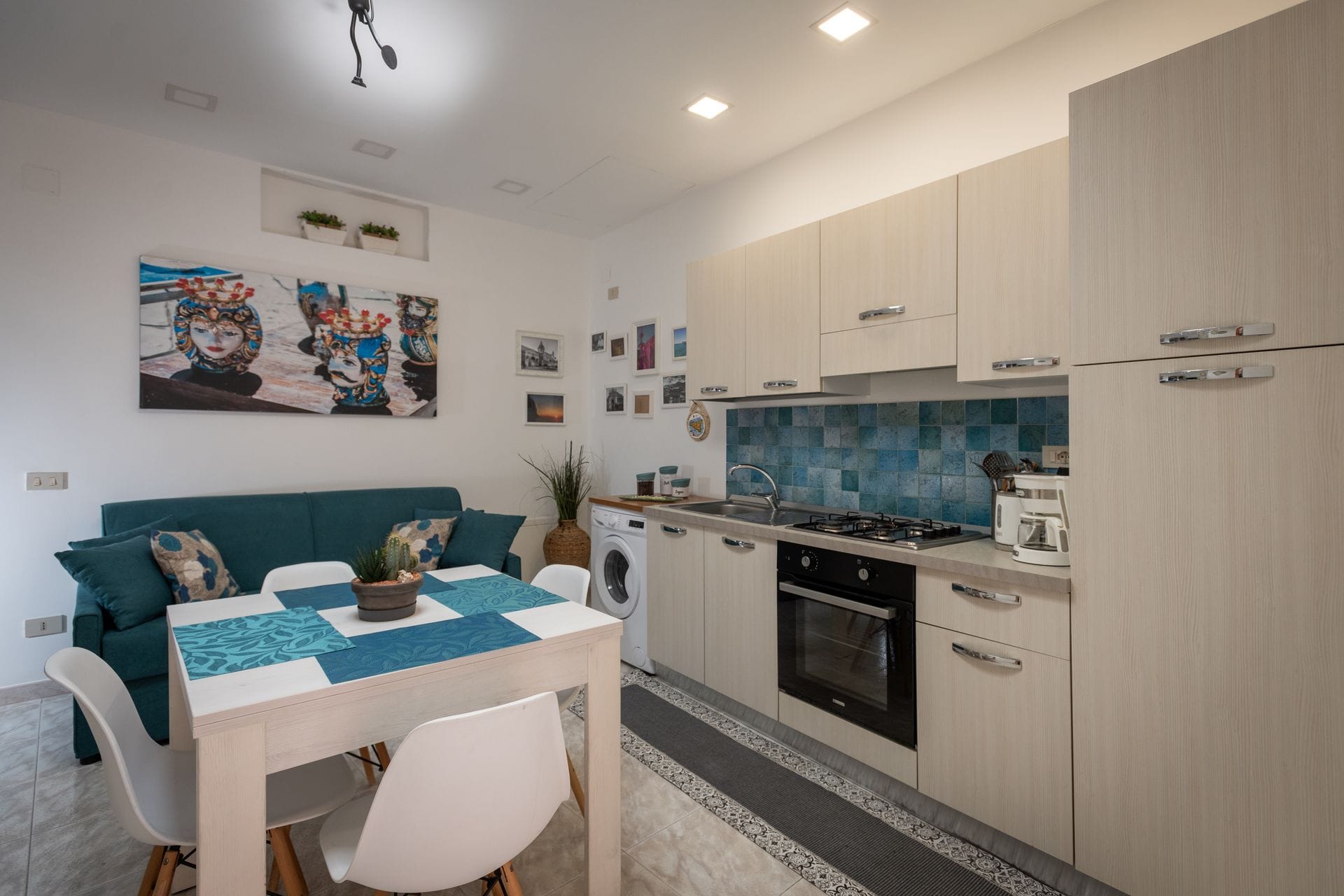 La cucina, completa di tutti gli accessori, con piano cottura e forno elettrico, microonde, frigo, congelatore e lavatrice vi permetterà di essere autonomi.